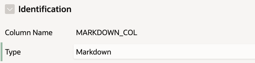 Markdown Editor, namedPO_MARKDOWN, into the region you created in the previous step. Addhiddenin theLayout > Column Attributessection of the item. -