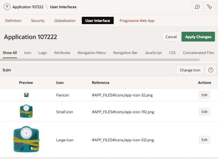 - Ability to upload and resize your own image as an Application icon. By doing this you not only get a new APEX Builder Application icon, but also: